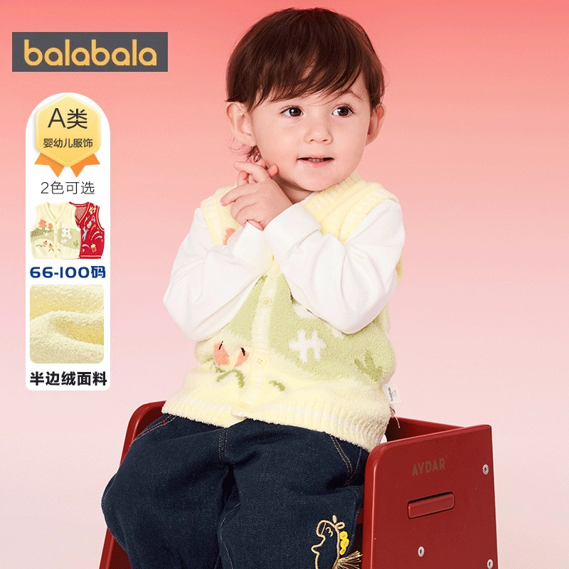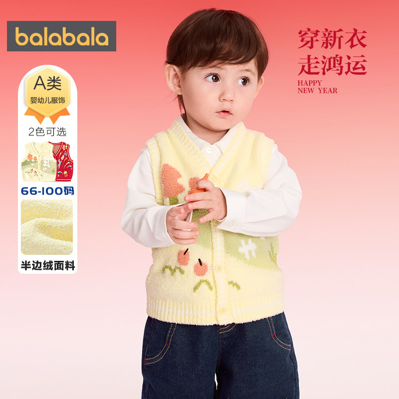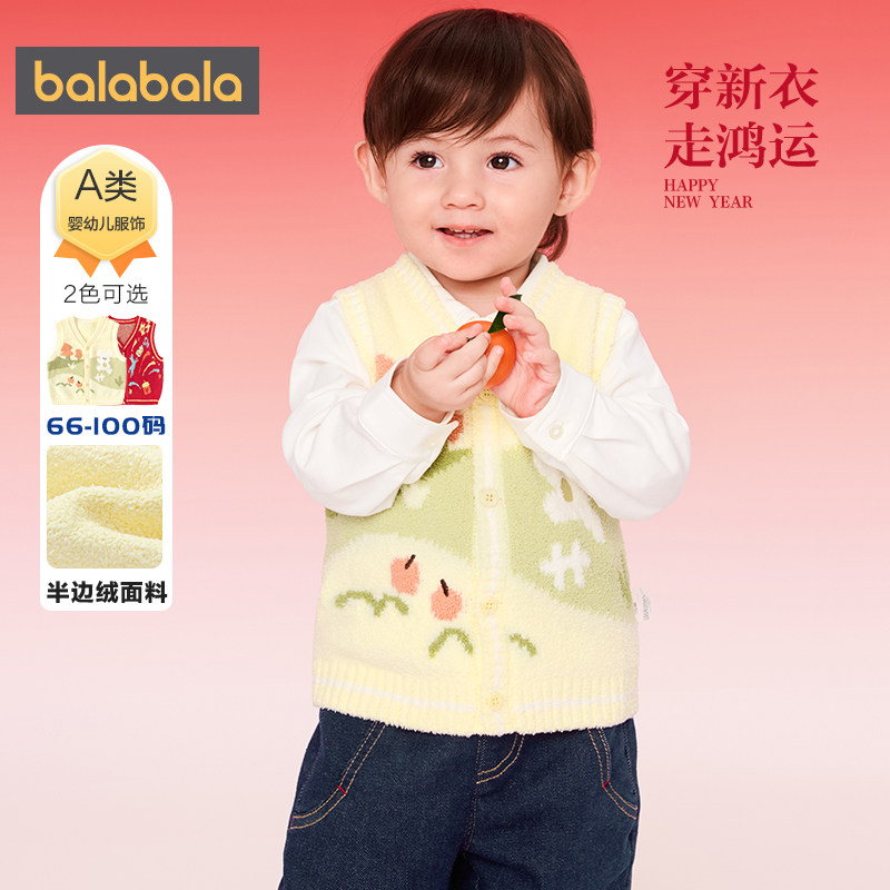 巴拉巴拉宝宝马甲男童女童背心秋冬款童装婴儿红色新年半边绒坎肩