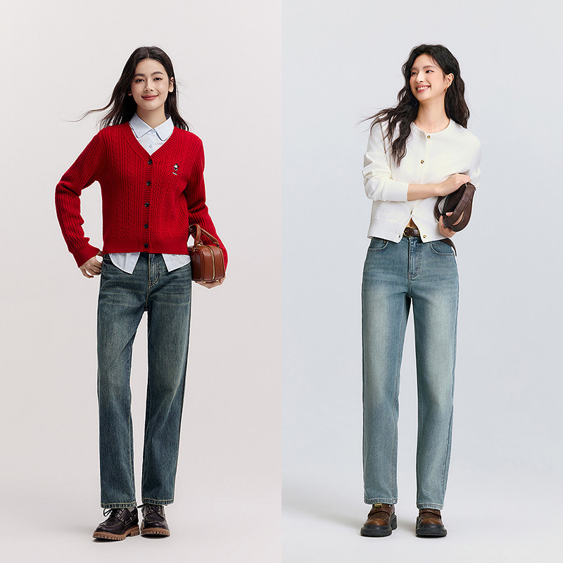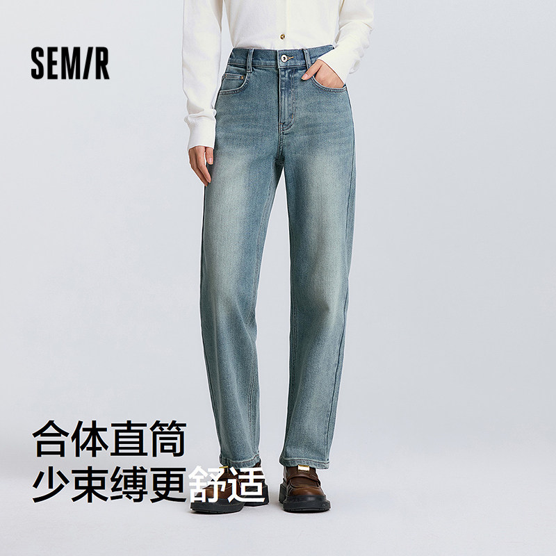 森柔牛仔|商场同款森马牛仔裤女半松紧腰直筒裤春季2025新款长裤
