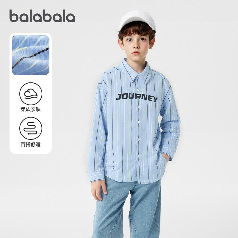 巴拉巴拉童装儿童长袖衬衫男女童条纹外套大童薄衬衣2026春装新款