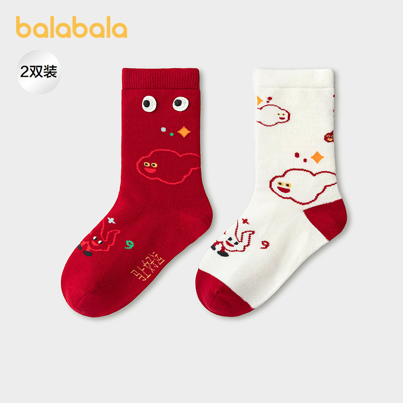 【商场同款】巴拉巴拉儿童袜子春秋男童棉袜中筒袜柔弹提花两双装