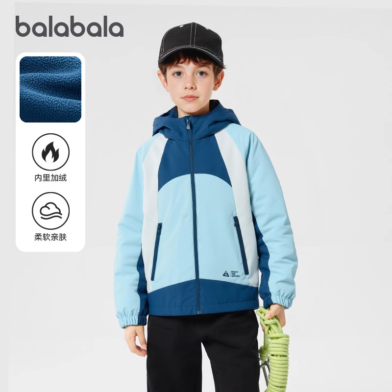巴拉巴拉男童外套儿童加绒户外冲锋上衣大童衣服2026春装新款童装