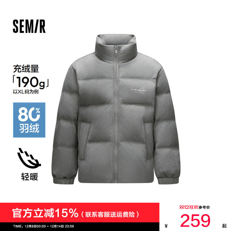 [商场同款]森马羽绒服男质感仿麂皮外套2024冬新款立领面包服宽松