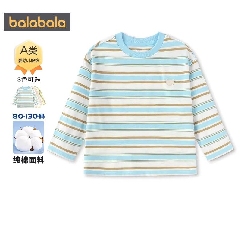 巴拉巴拉儿童长袖t恤男童女童纯棉打底衫春秋款童装宝宝条纹上衣