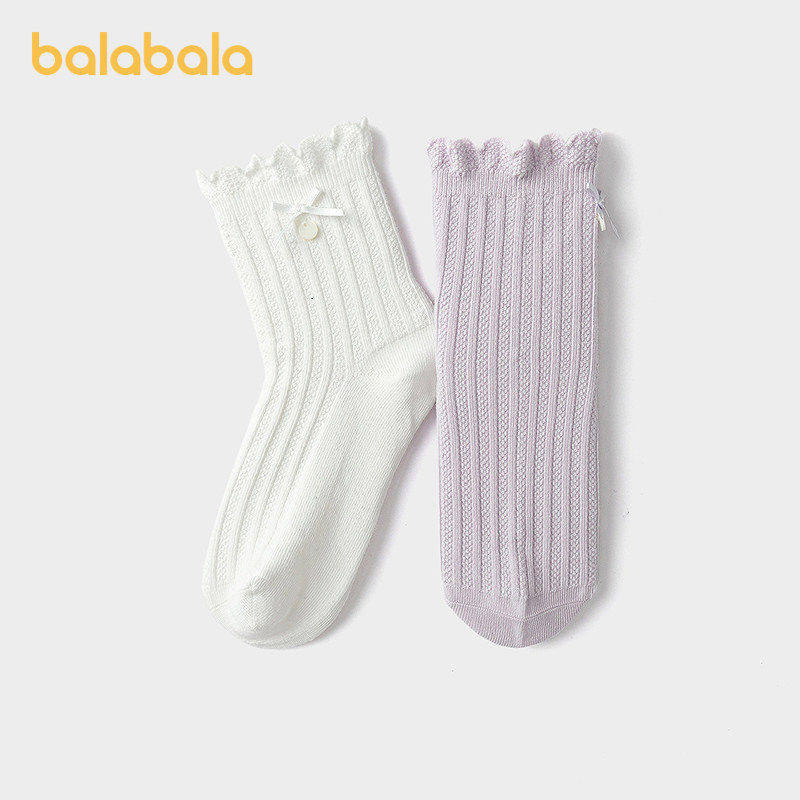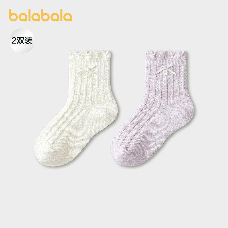 【商场同款】巴拉巴拉儿童袜子春秋女童棉袜甜美蝴蝶结短袜两双装