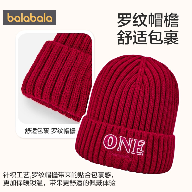 巴拉巴拉儿童毛线帽男女童针织帽秋冬保暖套头帽宝宝百搭护耳帽子