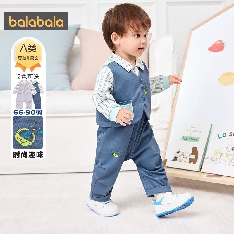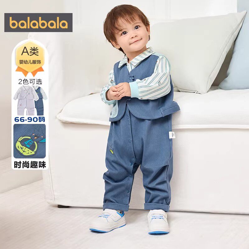 巴拉巴拉宝宝连体衣套装男童女童马甲两件套春秋款童装婴儿哈衣萌