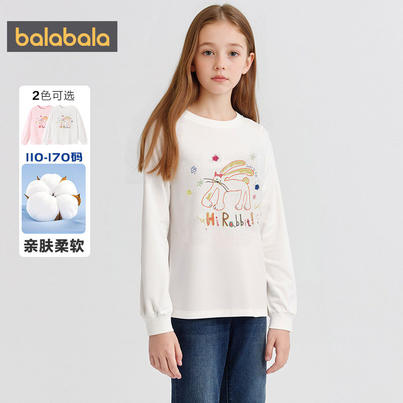 巴拉巴拉女童长袖t恤中大童纯棉打底衫春装2026新款童装儿童上衣