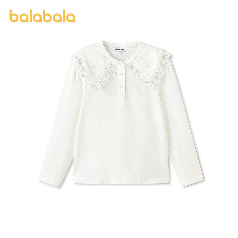 巴拉巴拉儿童长袖t恤女童春季上衣甜美打底衫半开襟舒适精致刺绣