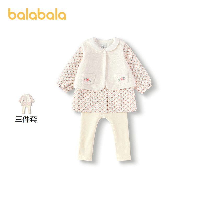 【商场同款】巴拉巴拉宝宝套装秋冬女童三件套甜美洋气加绒温暖
