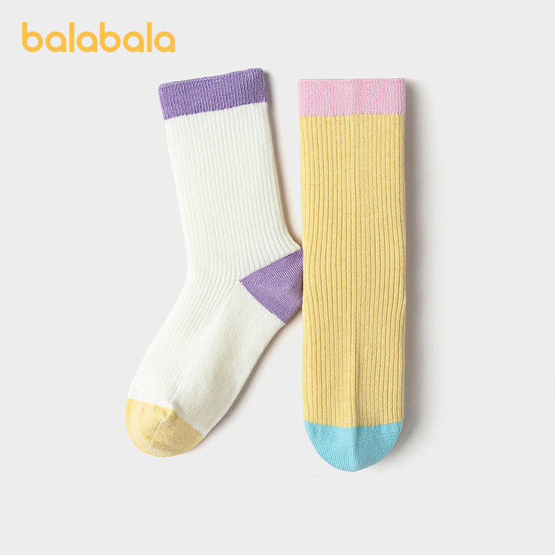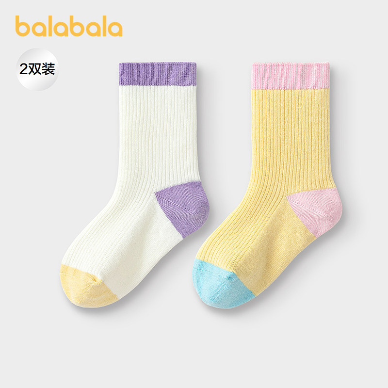 【商场同款】巴拉巴拉宝宝袜子冬季保暖袜婴幼儿中筒撞色袜两双装