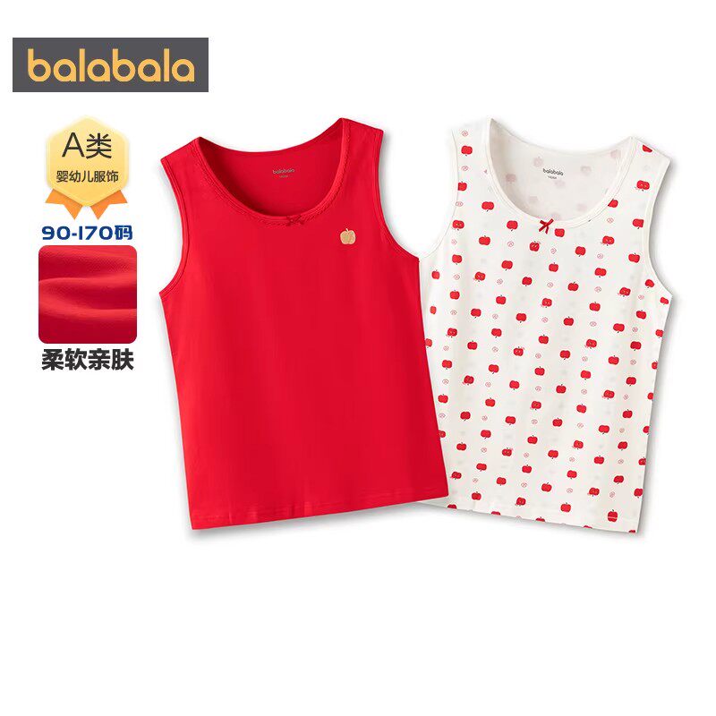 巴拉巴拉女童背心中大童红色本命年睡衣春秋款童装儿童打底衫t恤
