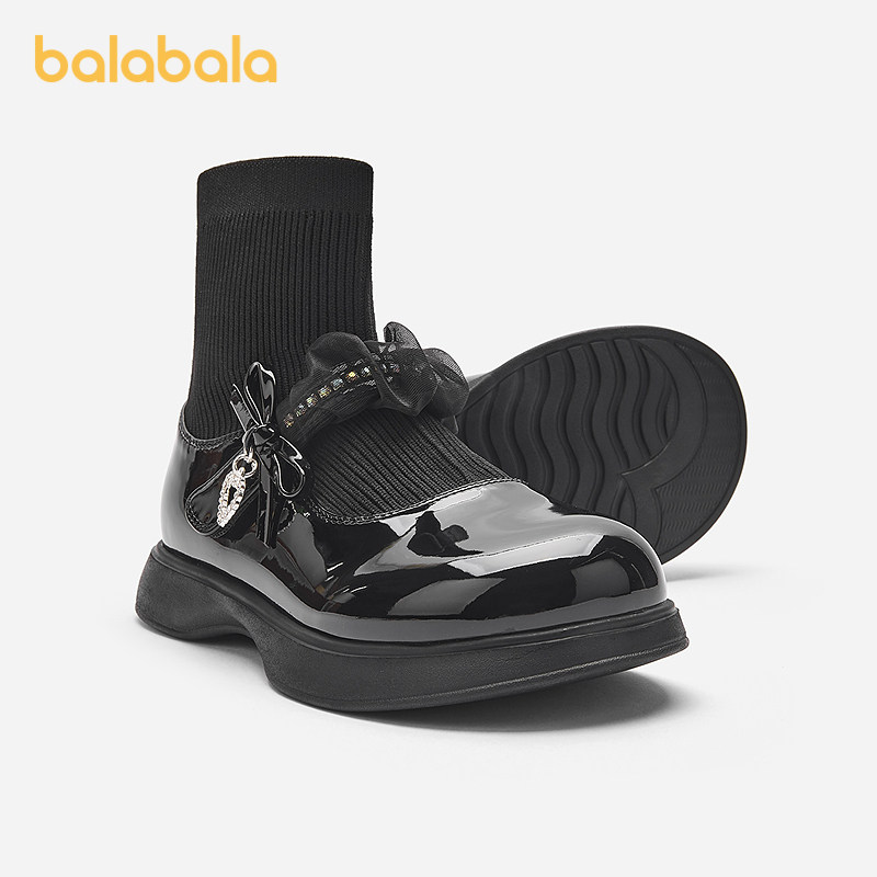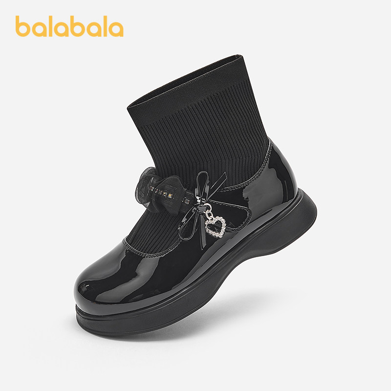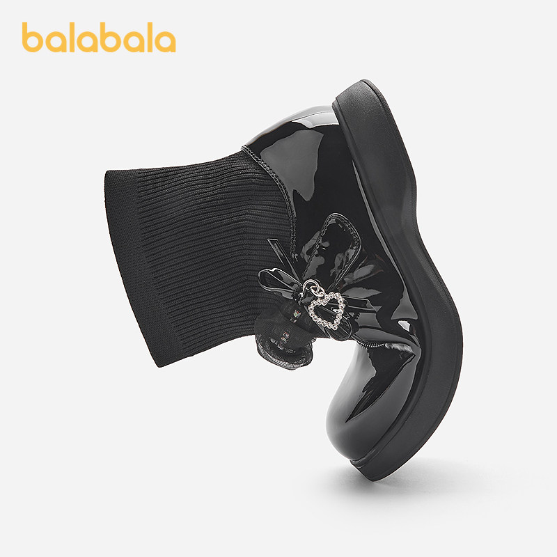 【商场同款】巴拉巴拉女童公主靴亮面皮靴黑色百搭2025秋新款袜靴