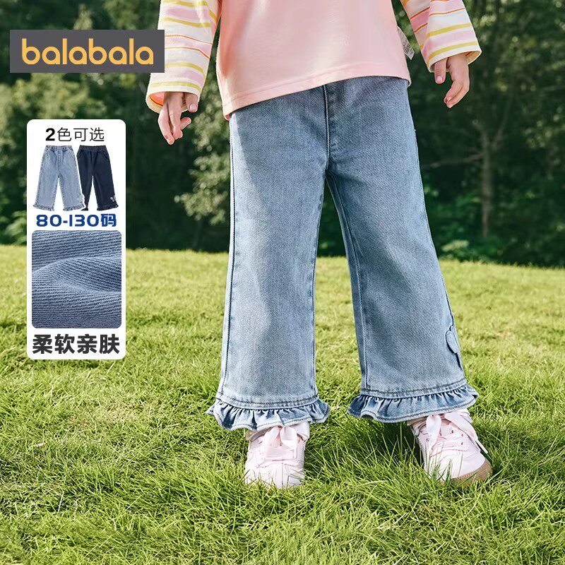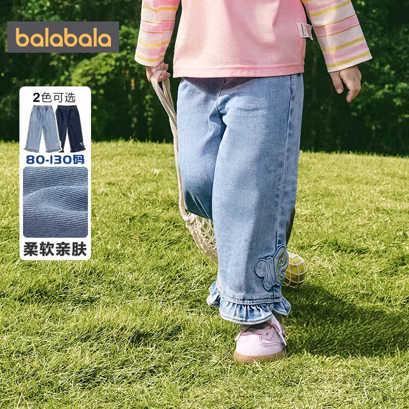 巴拉巴拉女童牛仔裤宝宝裤子春装2026新款童装儿童洋气直筒袜长裤