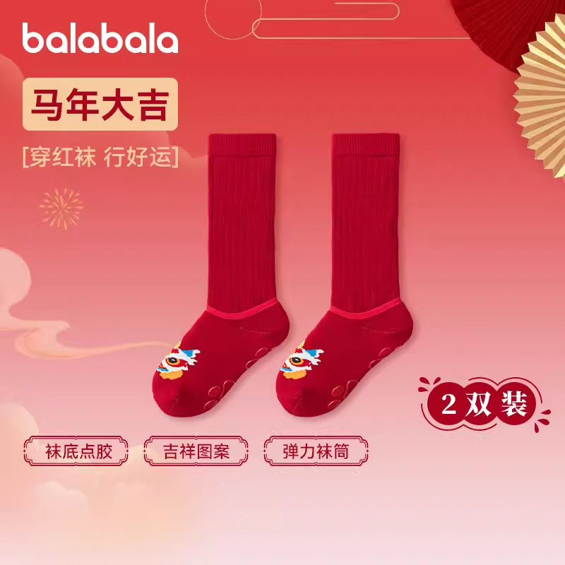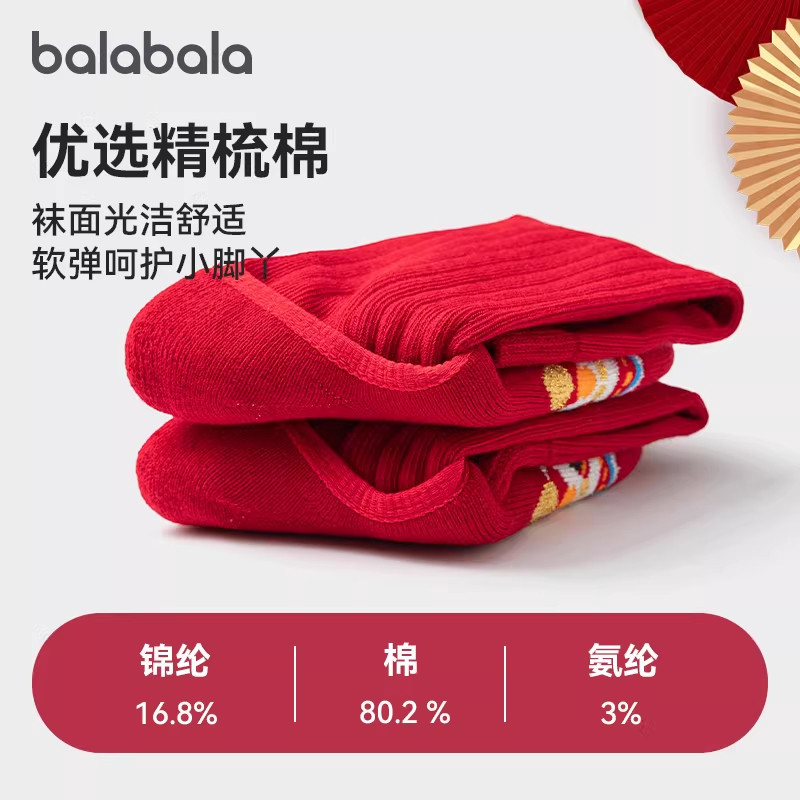 【商场同款】巴拉巴拉儿童袜子男女棉袜宝宝毛圈中筒袜两件套袜厚