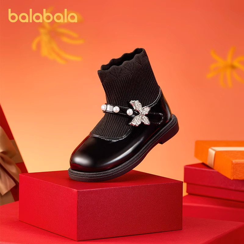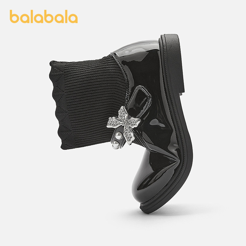 巴拉巴拉女童靴子儿童黑色皮鞋大童运动鞋2026春季新款童鞋百搭潮
