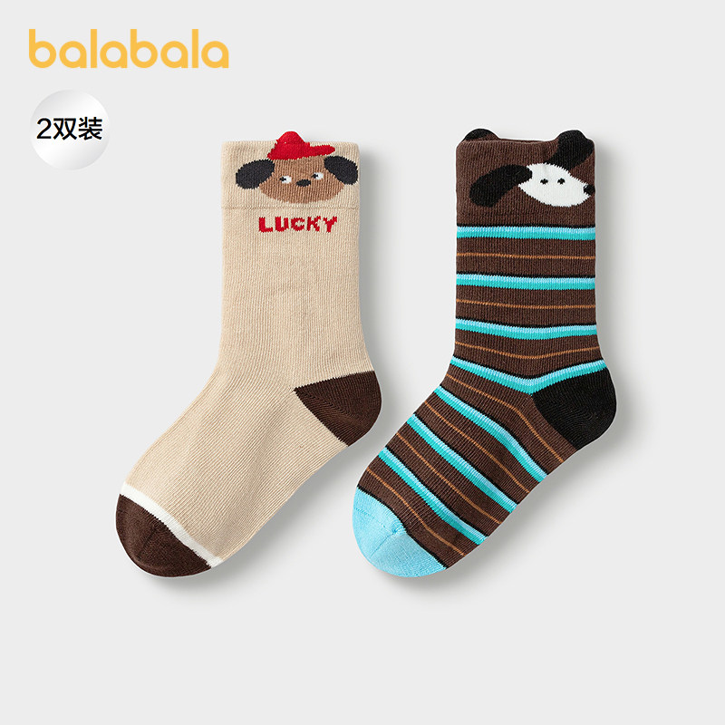 【商场同款】巴拉巴拉宝宝袜子冬季萌趣袜婴幼儿中筒袜提花两双装