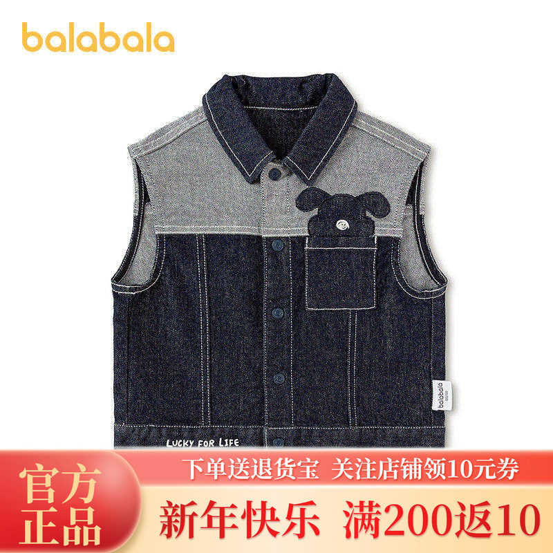 【商场同款】巴拉巴拉童装儿童马甲男童2026新款撞色车线牛仔背心