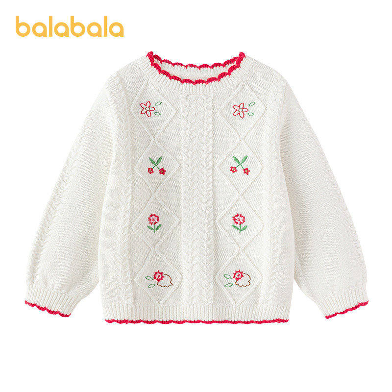【商场同款】巴拉巴拉儿童毛衫女童2026新款春秋菱形格提花针织衫