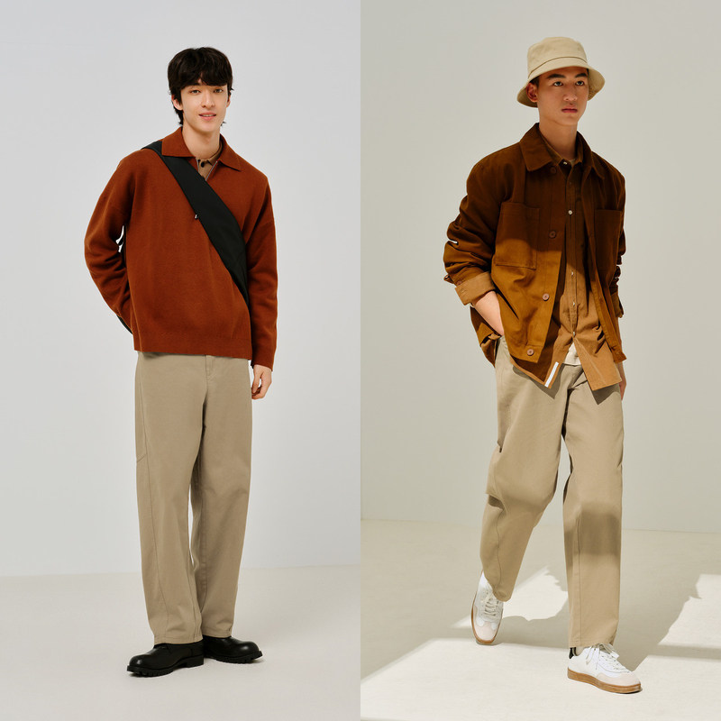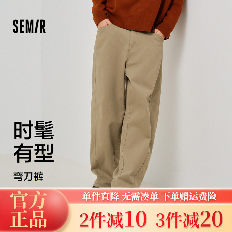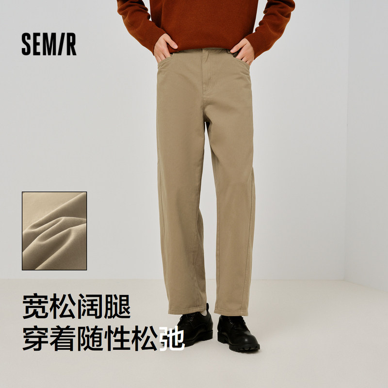 森马休闲裤男纯色阔腿弯刀裤时尚2025春季新款宽松直筒裤简约百搭