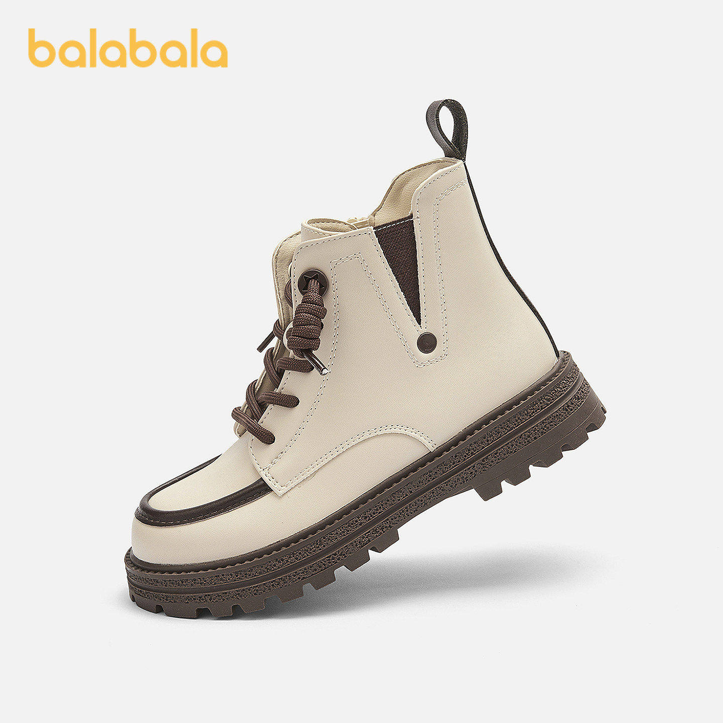 巴拉巴拉童鞋儿童马丁靴女童撞色复古靴子拉链款秋冬鞋子时尚百搭