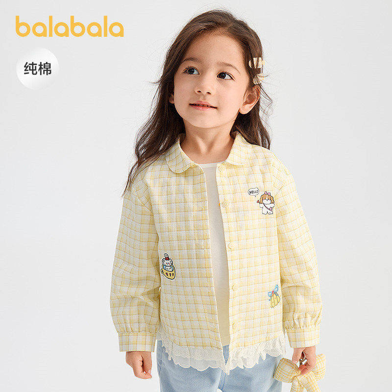 【商场同款】巴拉巴拉儿童长袖衬衫女童2026新款春秋格纹上衣甜美