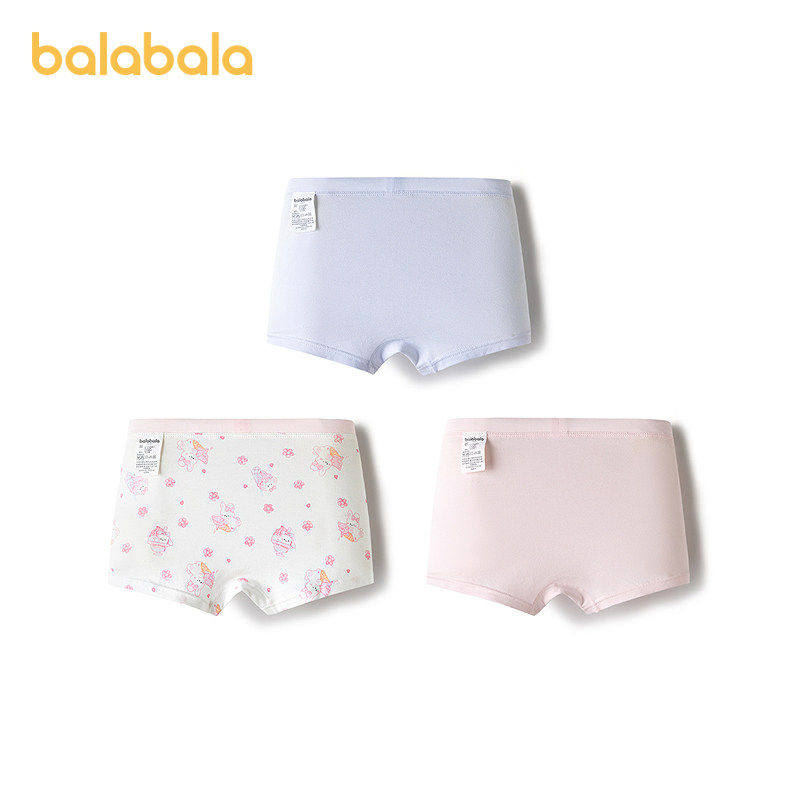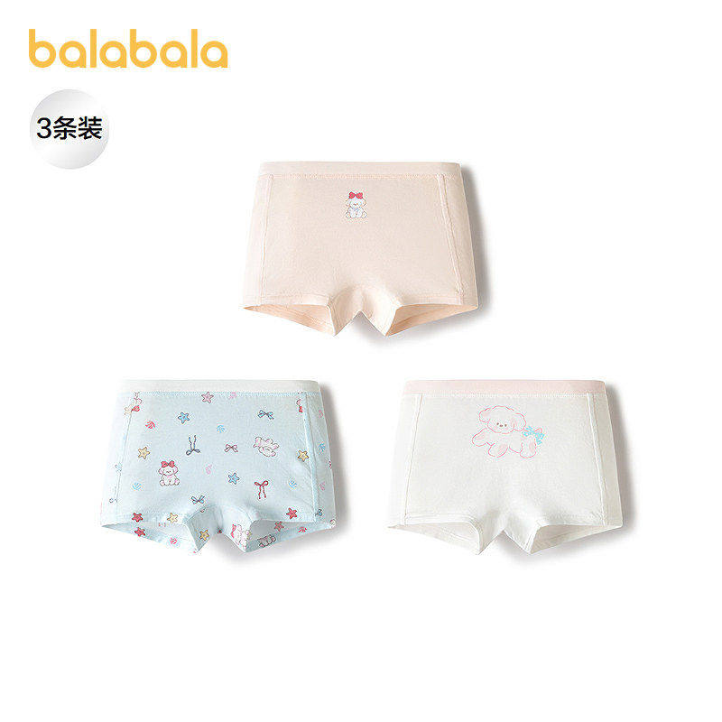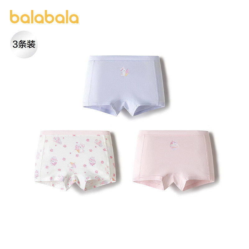 巴拉巴拉儿童内裤平角中大小童宝宝女童四角短裤抗菌柔软薄三条装