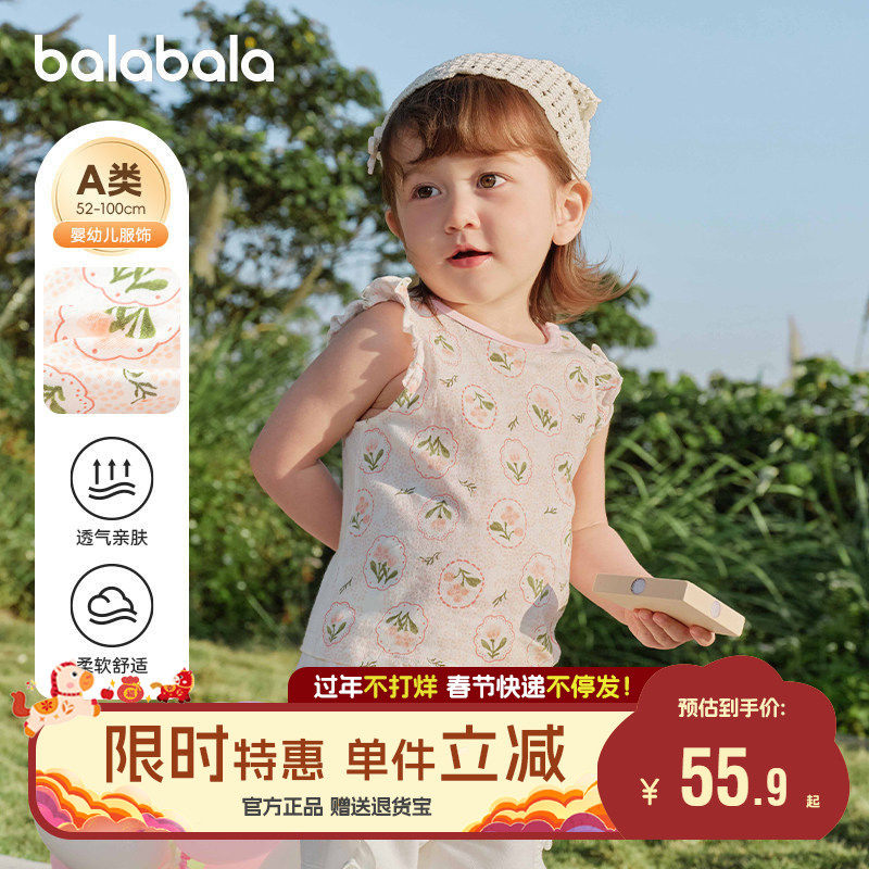 巴拉巴拉婴儿背心女童纯棉无袖上衣宝宝两件装2026夏装新款童装小