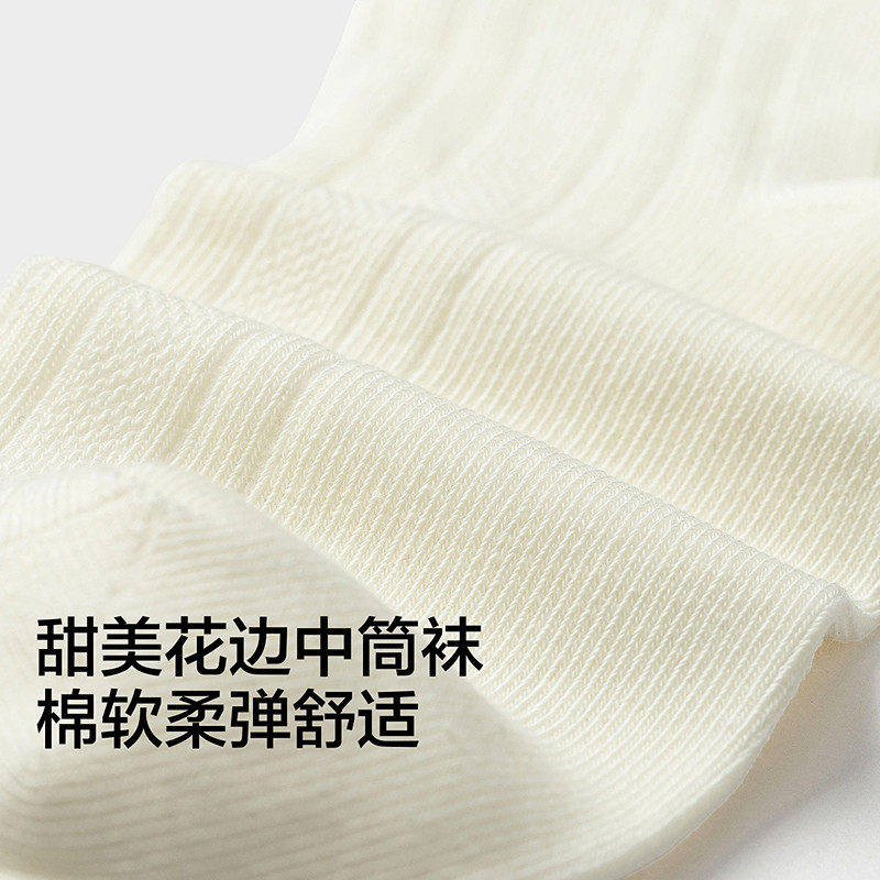 【商场同款】巴拉巴拉儿童袜子春秋女童棉袜甜美中筒花边袜两双装