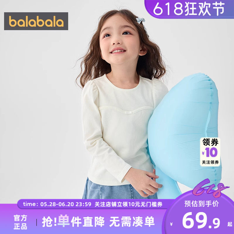 【商场同款】巴拉巴拉女童长袖T恤宝宝白色打底衫春秋款童装上衣