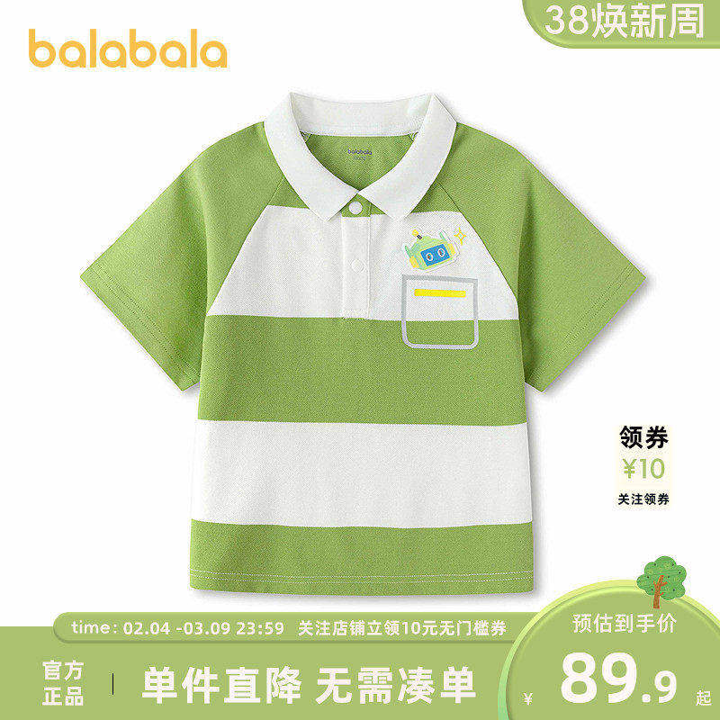 【balaOne】巴拉巴拉宝宝短袖t恤男童2026新款夏装时尚插肩袖上衣