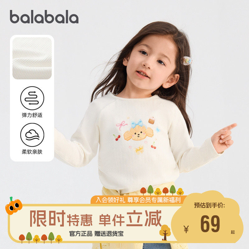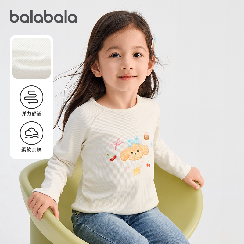 巴拉巴拉童装商场同款女童长袖t恤宝宝白色上衣儿童2026新款春装