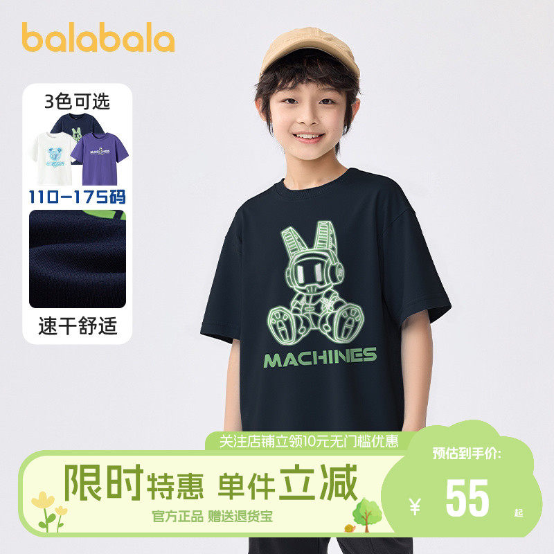 巴拉巴拉男童短袖t恤中大童纯棉上衣夏装2026新款童装儿童打底衫t