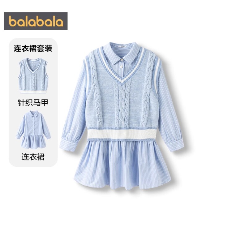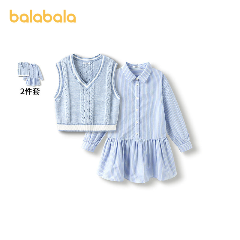 【商场同款】巴拉巴拉女童连衣裙套装中大童针织衫马甲裙子春秋款