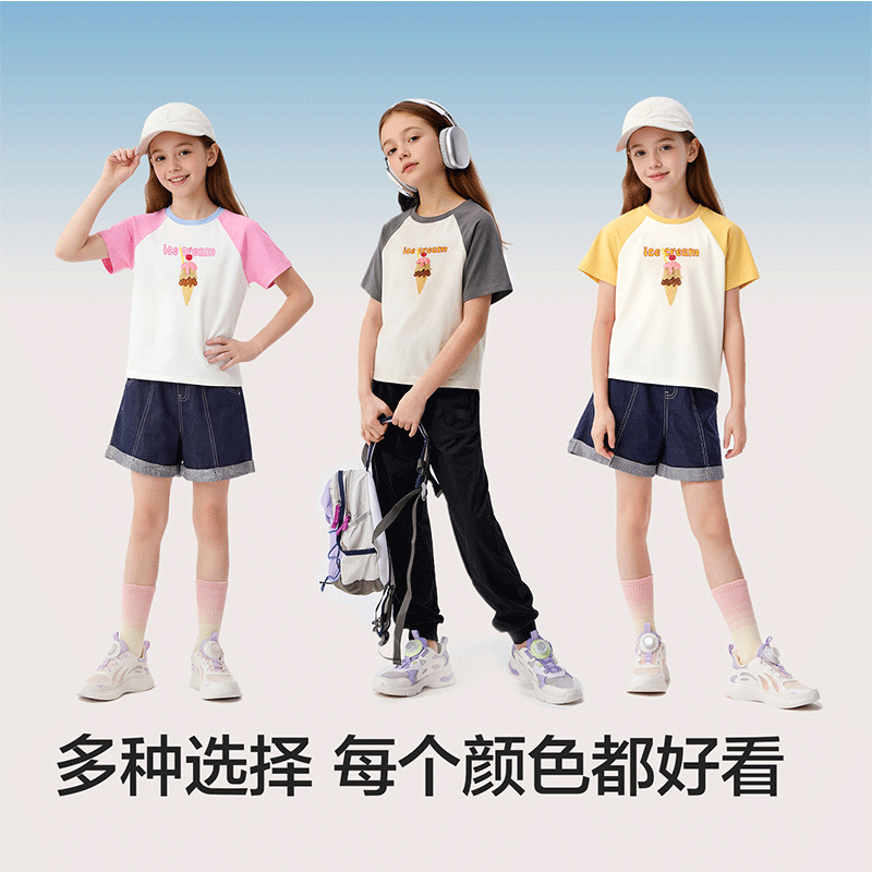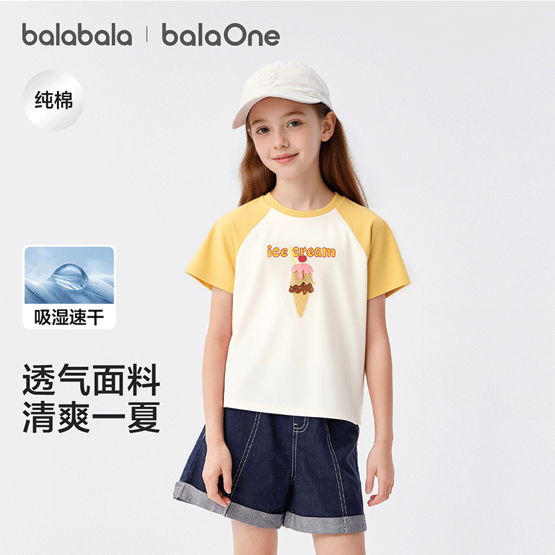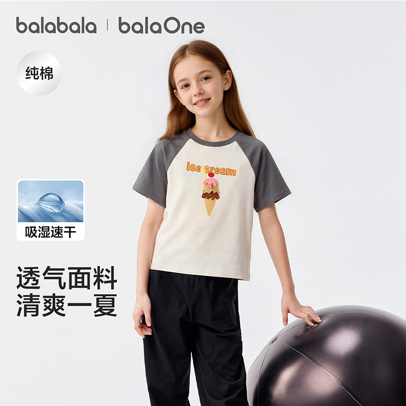 巴拉巴拉童装女童短袖t恤儿童2026新款夏装大童吸湿速干纯棉上衣