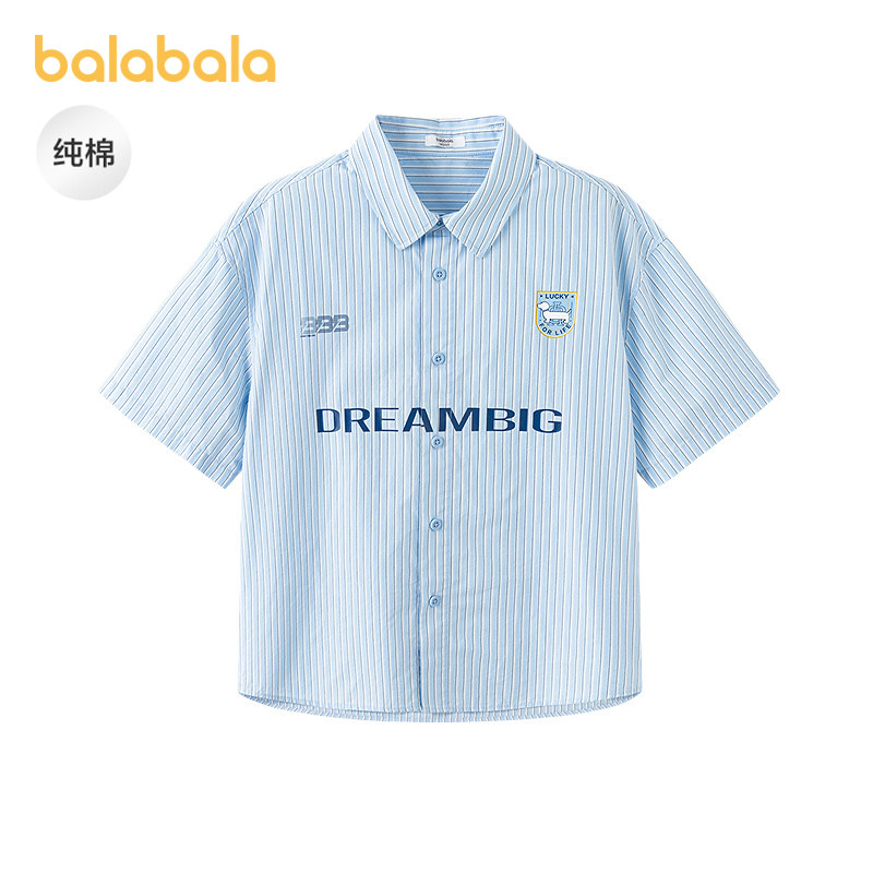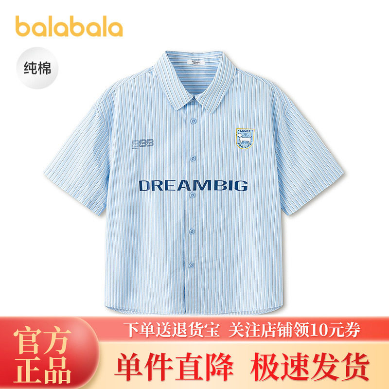 【商场同款】巴拉巴拉男童短袖衬衫儿童大童上衣2026新款夏装纯棉