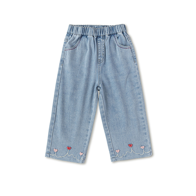 【商场同款】巴拉巴拉儿童长裤女童2026新款春秋爱心绣花章牛仔裤
