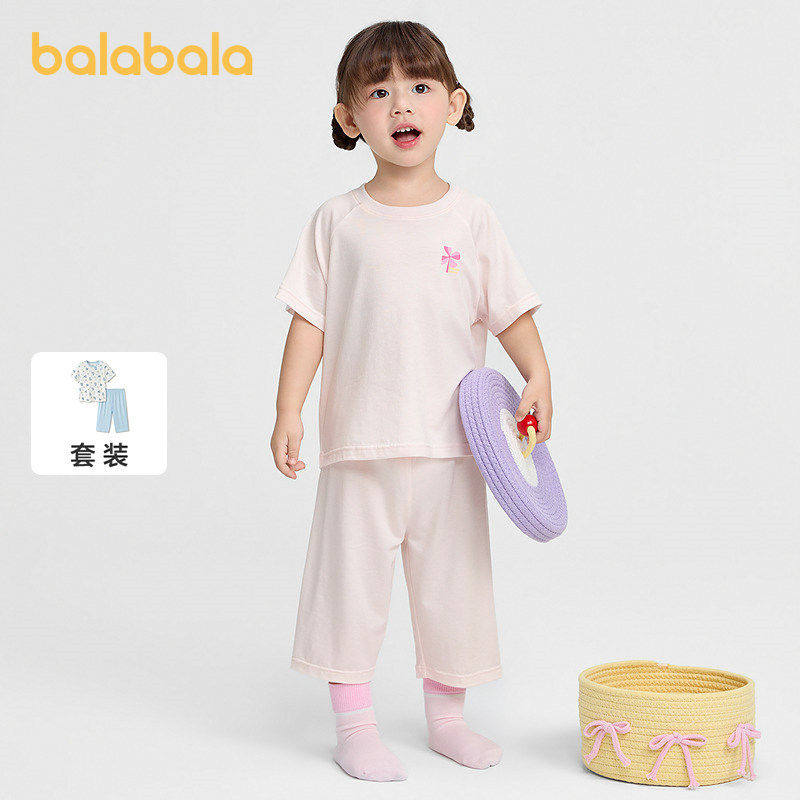 巴拉巴拉儿童睡衣套装夏季空调服男童女童家居服宝宝短袖短裤舒适