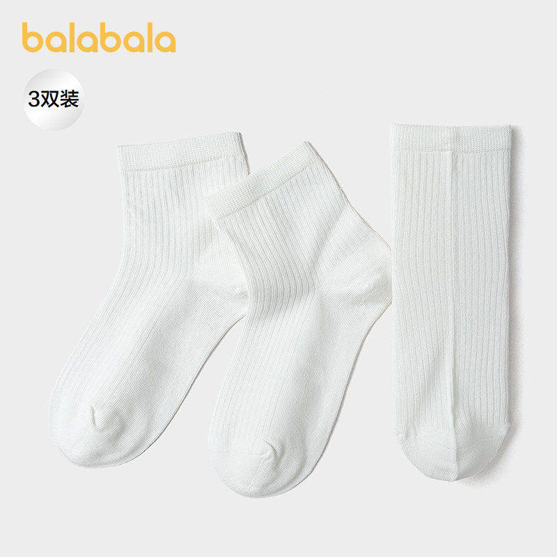 【商场同款】巴拉巴拉儿童袜子夏网眼袜透气薄男女短袜纯色三双装