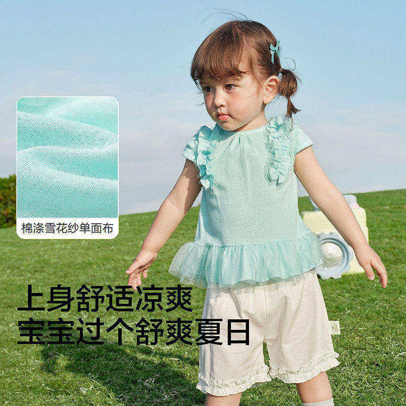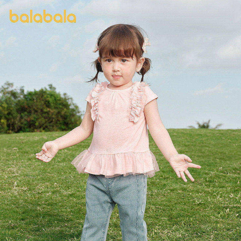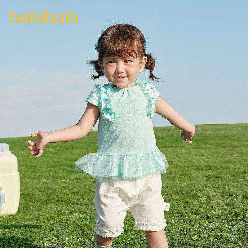 【balaOne】巴拉巴拉宝宝短袖t恤婴儿上衣女童2026新款精致甜美萌