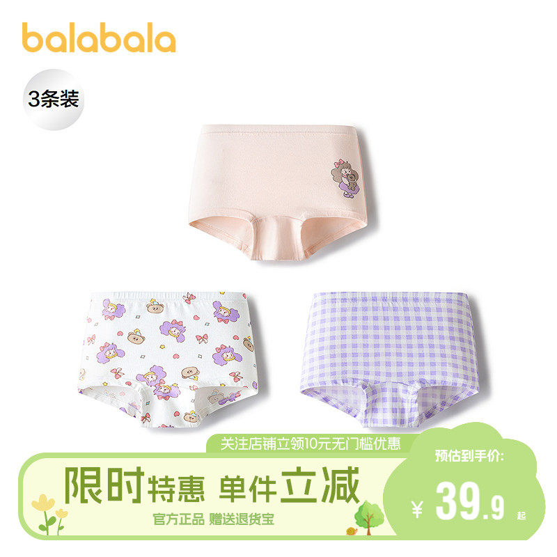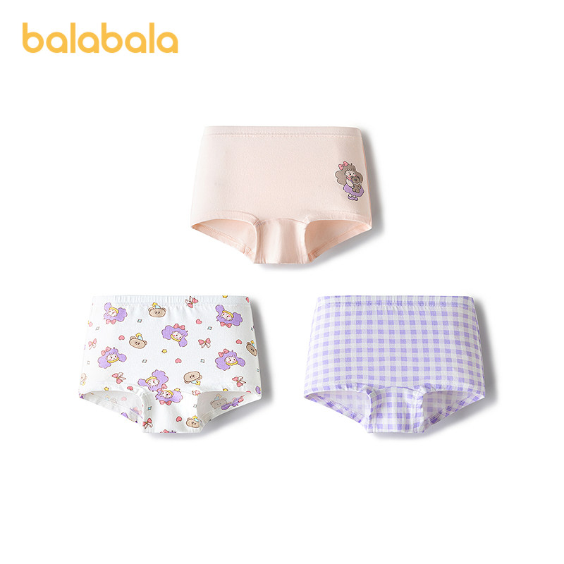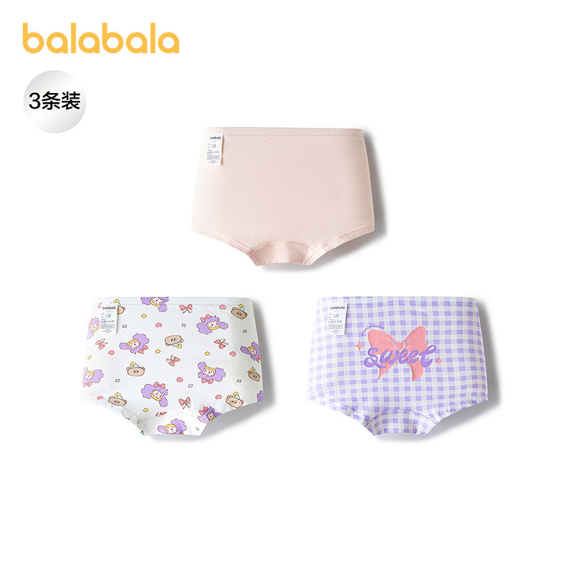 【balaOne】巴拉巴拉宝宝内裤平角纯棉裆儿童四角短裤女童三条装