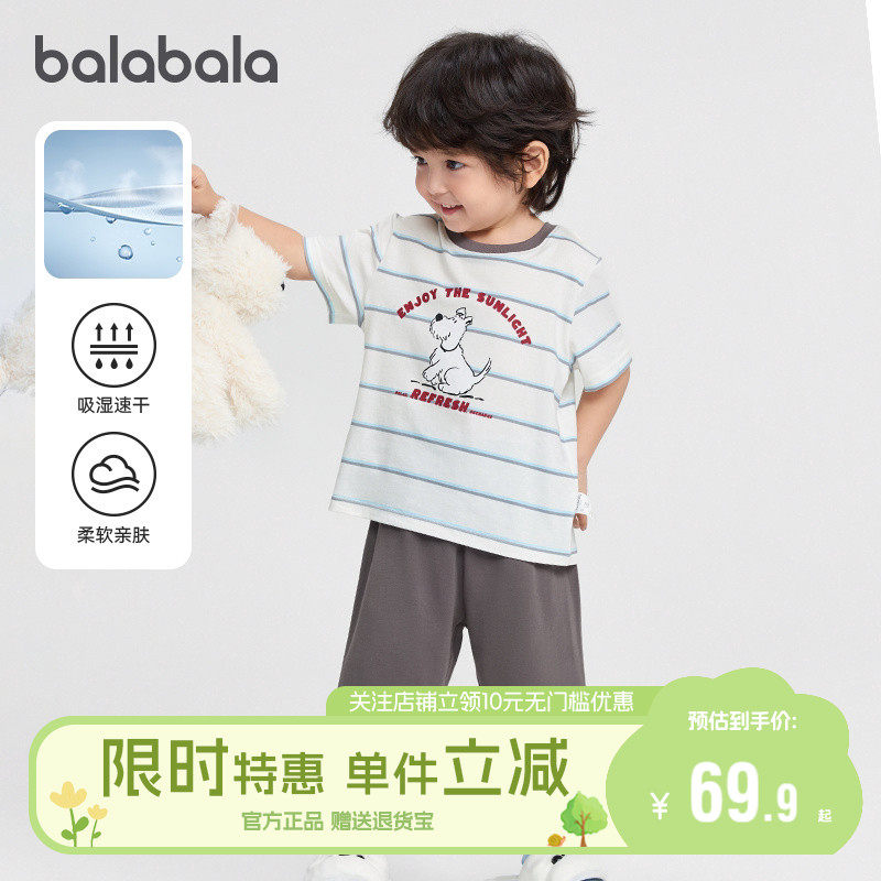 巴拉巴拉男童睡衣套装宝宝速干空调服儿童家居服2026夏装新款童装