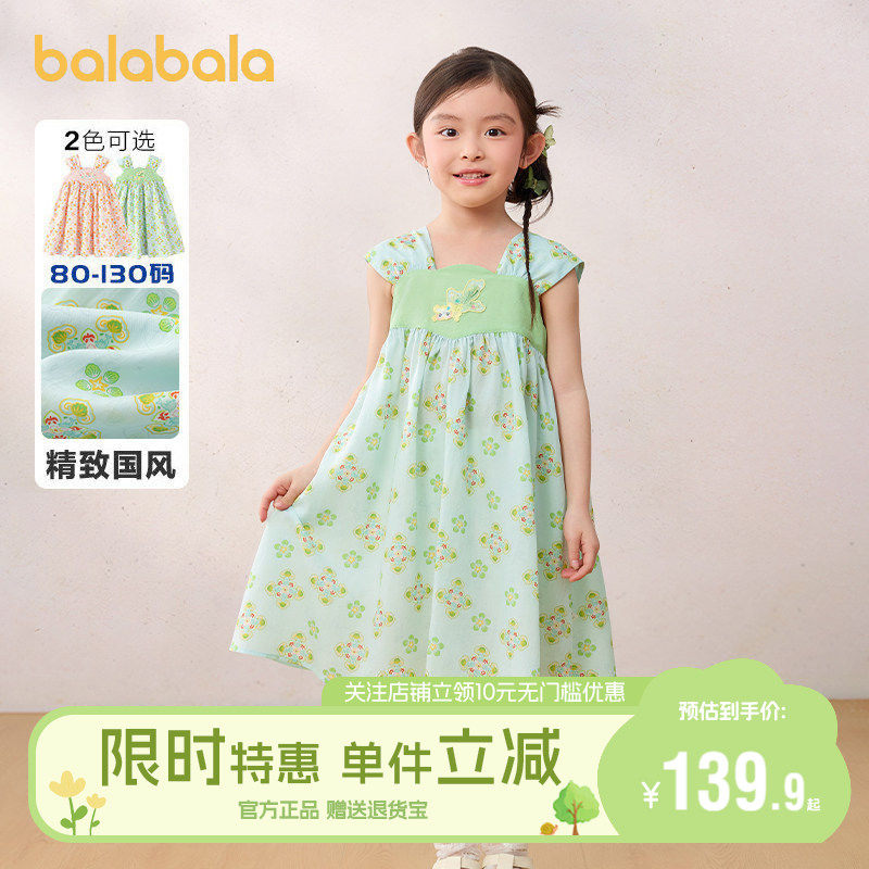 巴拉巴拉女童汉服连衣裙宝宝裙子2026新款夏装儿童长裙国风公主裙