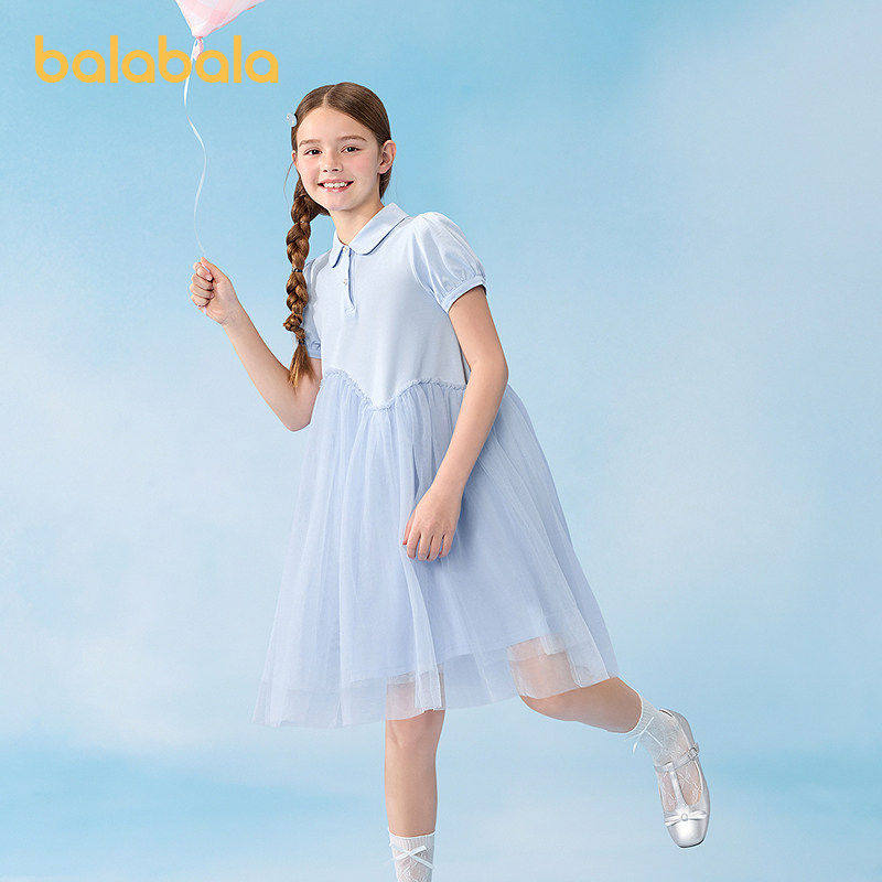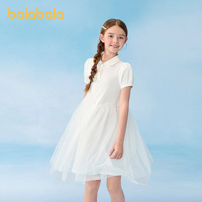 巴拉巴拉童装女童裙子儿童连衣裙中大童2026新款夏装网纱裙假两件