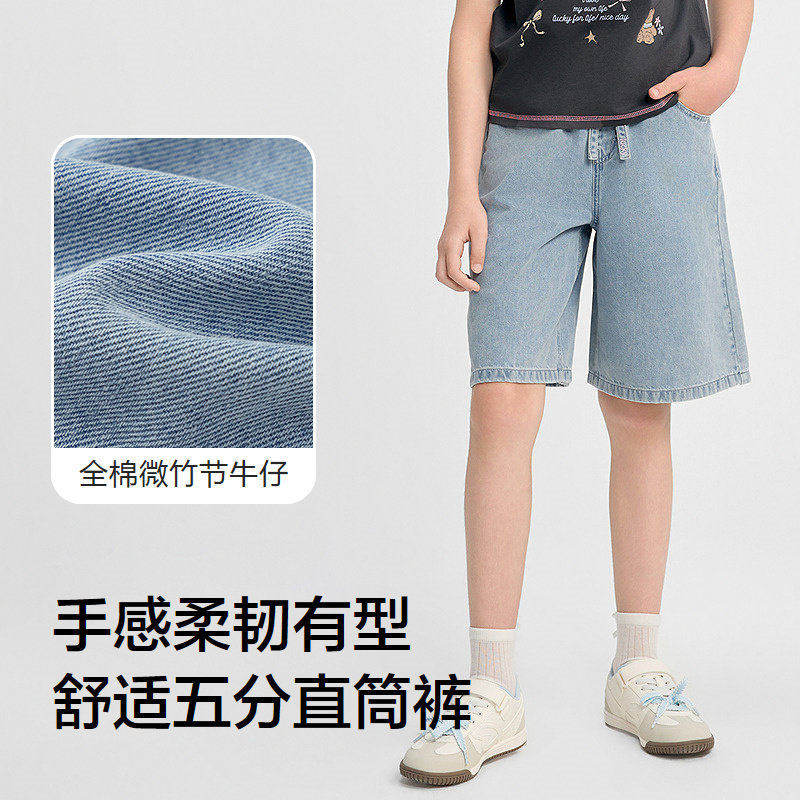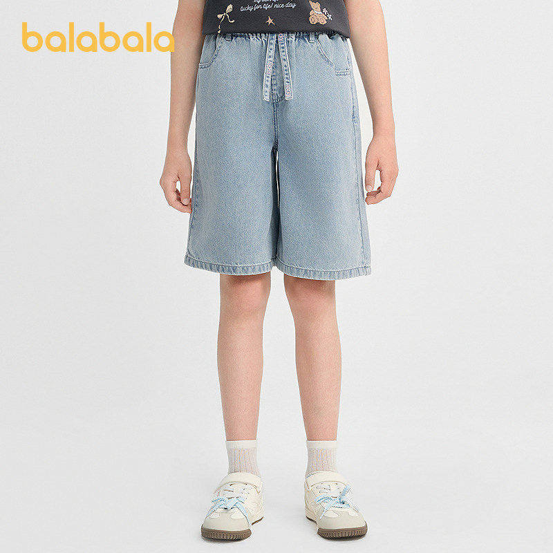 【balaOne】巴拉巴拉女童短裤儿童裤子2026夏新款全棉牛仔直筒裤