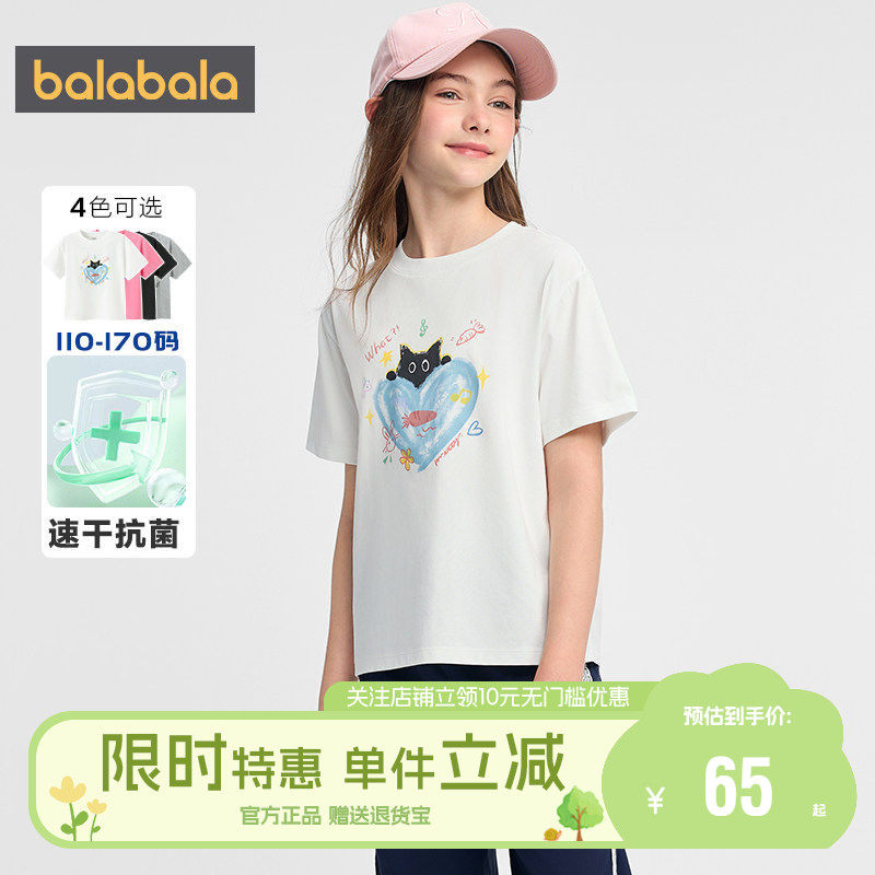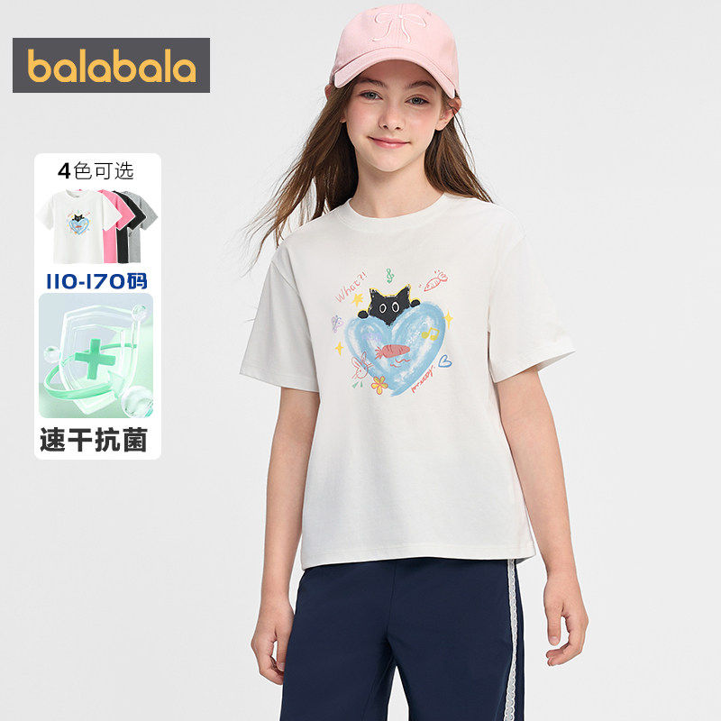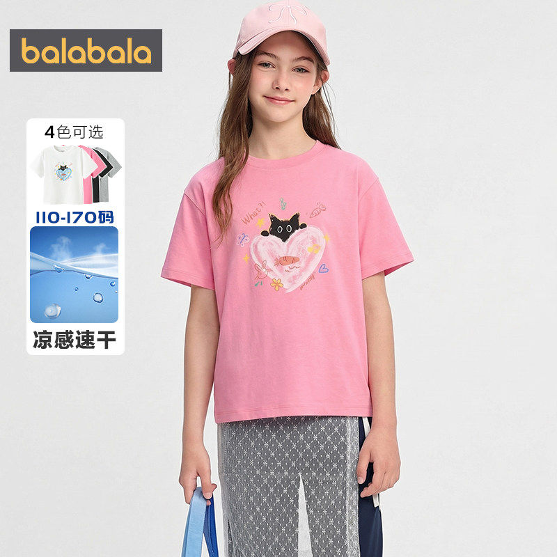 巴拉巴拉女童短袖t恤中大童速干打底衫夏季新款童装儿童半袖上衣