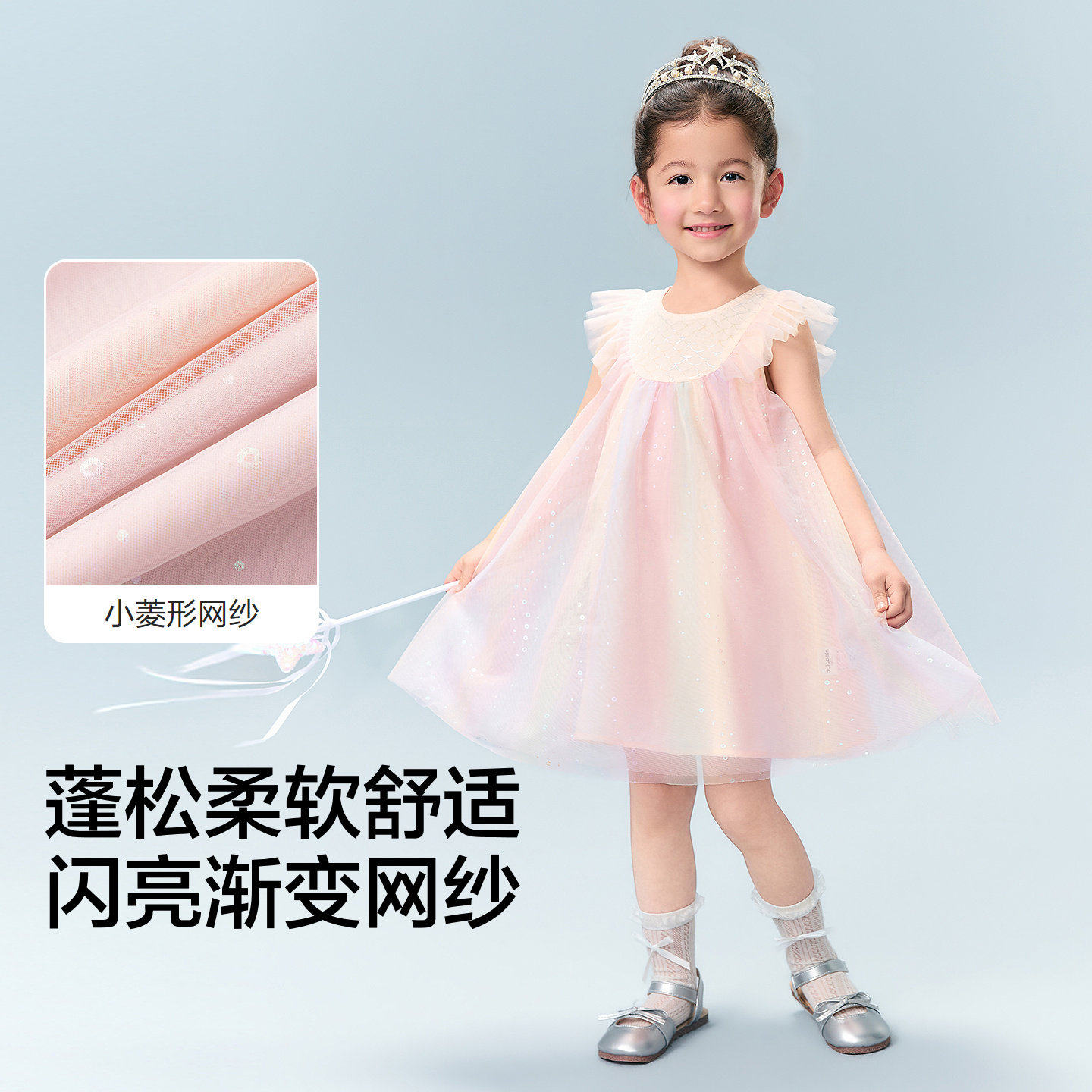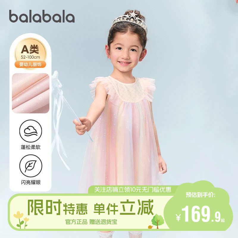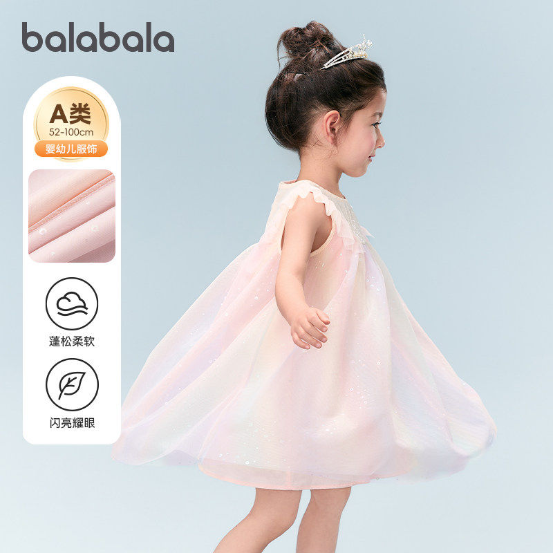巴拉巴拉儿童连衣裙女童公主裙2026新款夏装童装渐变网纱裙子薄款