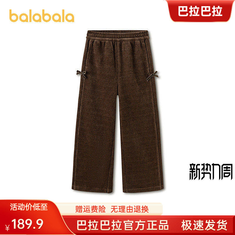 【商场同款】巴拉巴拉童装儿童裤子女2026春新款长裤直筒裤雪尼尔