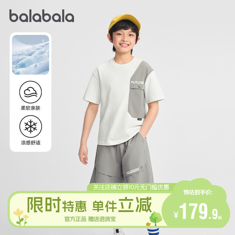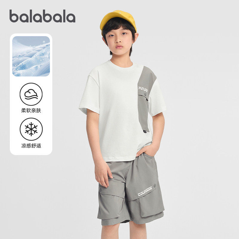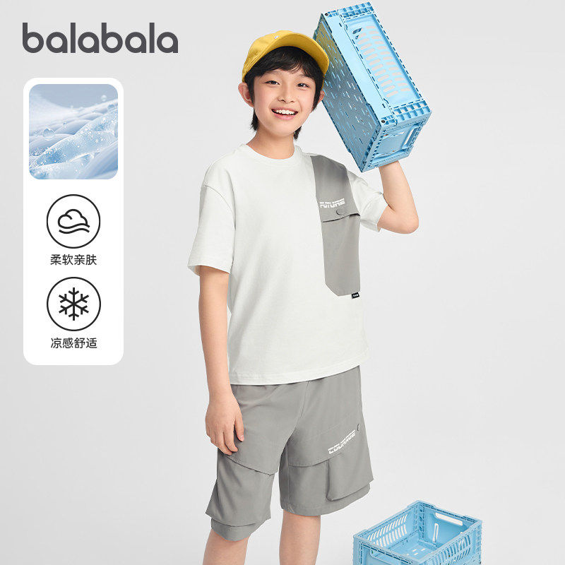 巴拉巴拉男童短袖套装儿童凉感T恤中大童两件套2026夏装新款童装