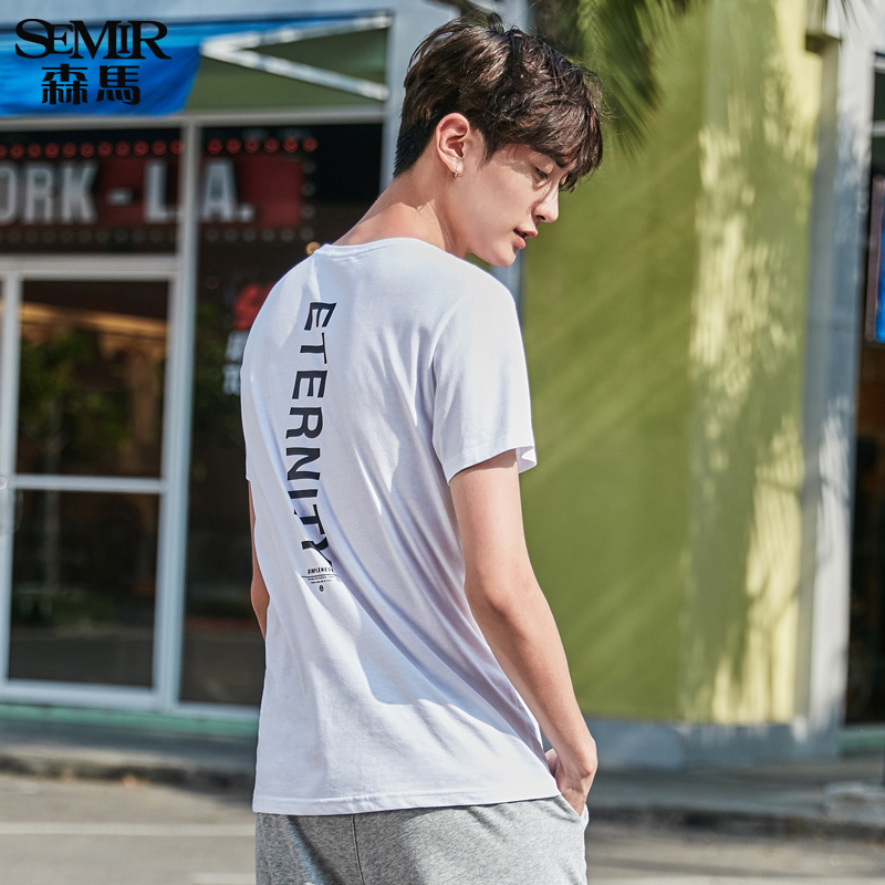 森马短袖T恤男士2017夏季新款半袖上衣圆领韩版潮纯棉字母白体恤