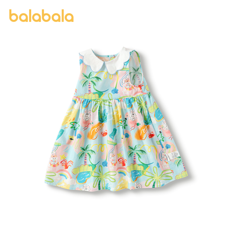 新款巴拉巴拉女童连衣裙宝宝童装2024夏季儿童无袖裙子小清新印花